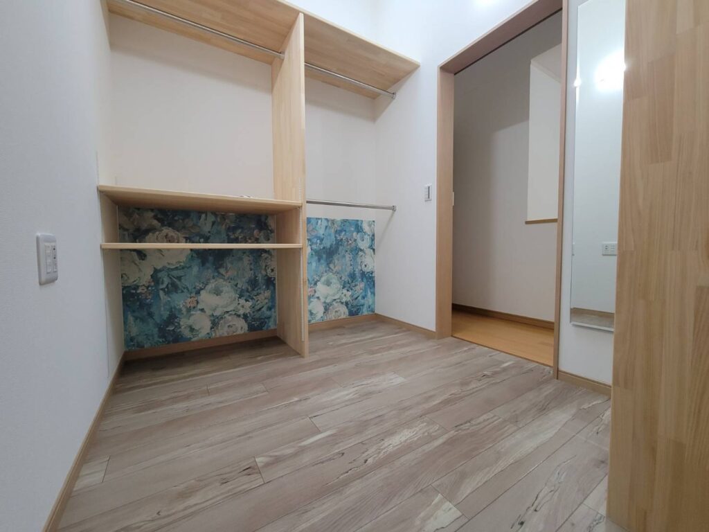 姿見も設置しており、身支度も快適に。 衣裳部屋のような素敵な空間に仕上がり、大変お喜びいただきました!