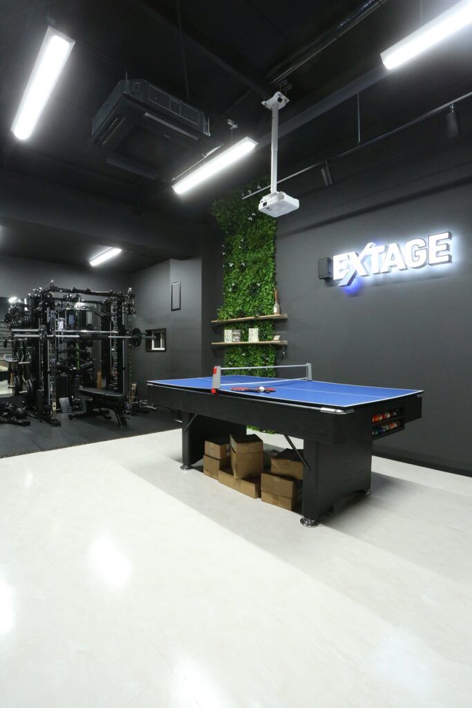 好きなサウナをいつでも気軽に楽しめるようホームサウナを設置。トレーニングマシンやカフェカウンター、ビリヤード台など、仕事の合間に気分をリフレッシュできる遊び場のような空間を作りました。防水処理もしっかり行い、気持ち良く使える場所に生まれ変わりました。これで社員のみなさんも、一層仕事ががんばれそうですね。今後、DIYで収納棚などを設置される予定で、さらに快適に使えるくつろぎ空間になっていきそうです。