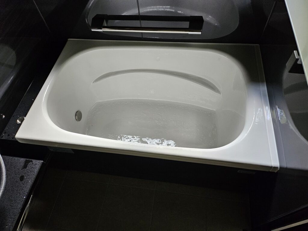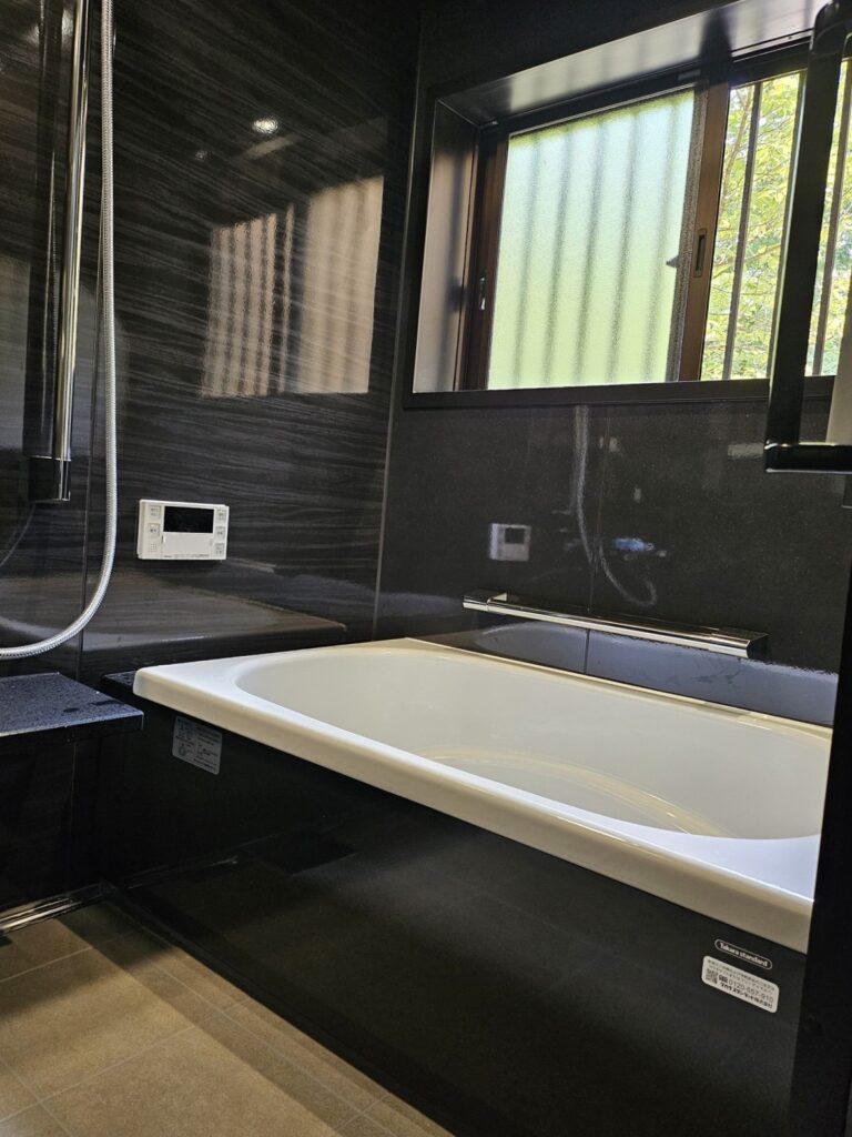 ご主人こだわりのブラックのバスルームはとてもかっこよく、大変気に入ってくださいました。「毎日のバスタイムが一層楽しみになった」と聞き、大変嬉しく思います。忙しい毎日の中で、ホッとくつろげる癒しの空間があるのは素敵ですね。仕事を終えて疲れた身体を温かい湯船でゆっくりほぐし、毎日を元気にお過ごしいただきたいです。