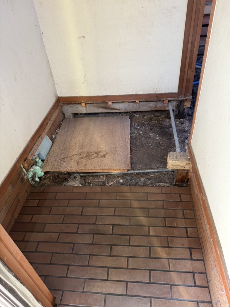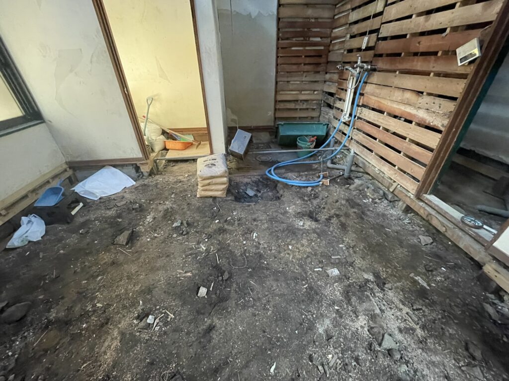 玄関を解体した際、床下から井戸が見つかったため、神主さんにお祓いをしていただき、きれいに埋設しました。解体して始めて内部の様子が分かるのは、リフォームではよくあること。想定外の出来事に対しても、一つひとつ丁寧に対応しました。