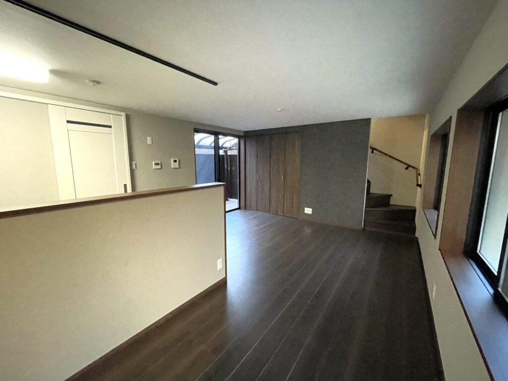 F様邸は、教育熱心な子育て世代に人気の高い御所南小学校区内にあり、今後も賃貸物件として貸し出される予定とのこと。将来的には息子さんへ相続するため、ご家族が暮らす可能性も見据え、ファミリー層に選ばれやすい内装デザインや空間づくりをご提案しました。