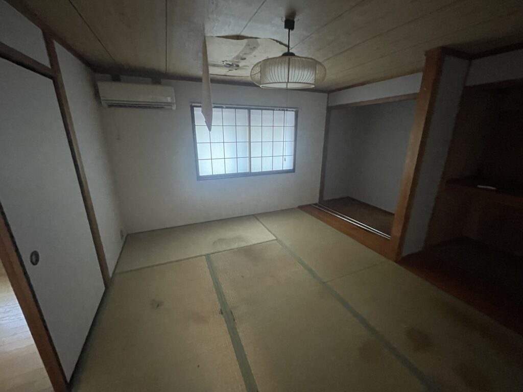 以前より賃貸物件として運用されているお住まいで、借主さまの退去をきっかけにリフォームをご検討。長い年月を経た建物のため、天井の剥がれや雨漏りといった経年劣化による傷みが随所に見られ、修繕が必要な状態でした。今回のリノベーションでは、これらの修繕に加え、断熱性能の向上や耐震補強、下地の張り替えを実施。躯体と土台のみを残し、外構も含めた大規模な改修を約半年かけて行い、安心して長く住み続けられる住まいへと生まれ変わらせました。