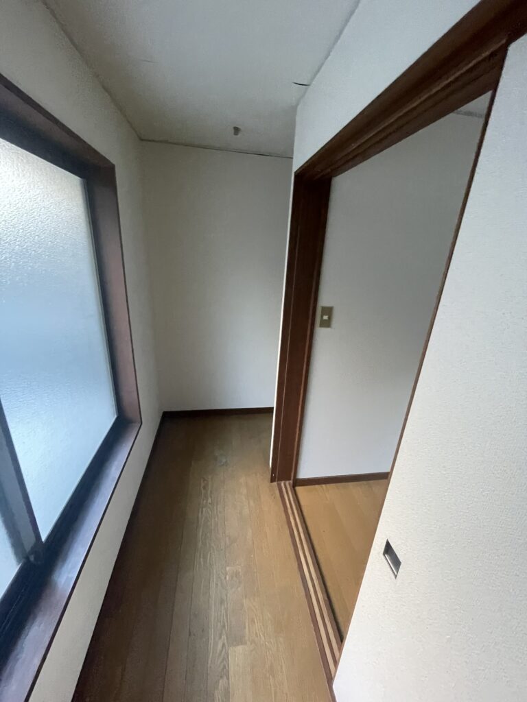 和室を洋室へとリフォームし、主寝室に。剥がれ落ちていた天井はきれいに改修し、床も畳からフローリングに張り替えました。明るいベージュのクロスで落ち着いた雰囲気を演出。1帖半の広いウォークインクローゼットを併設し、収納もたっぷり。棚やハンガーポールも設置し、洋服や日用品がすっきり片付く使い勝手の良い空間になりました。日焼け防止に、窓ガラスはUV仕様を採用しました。