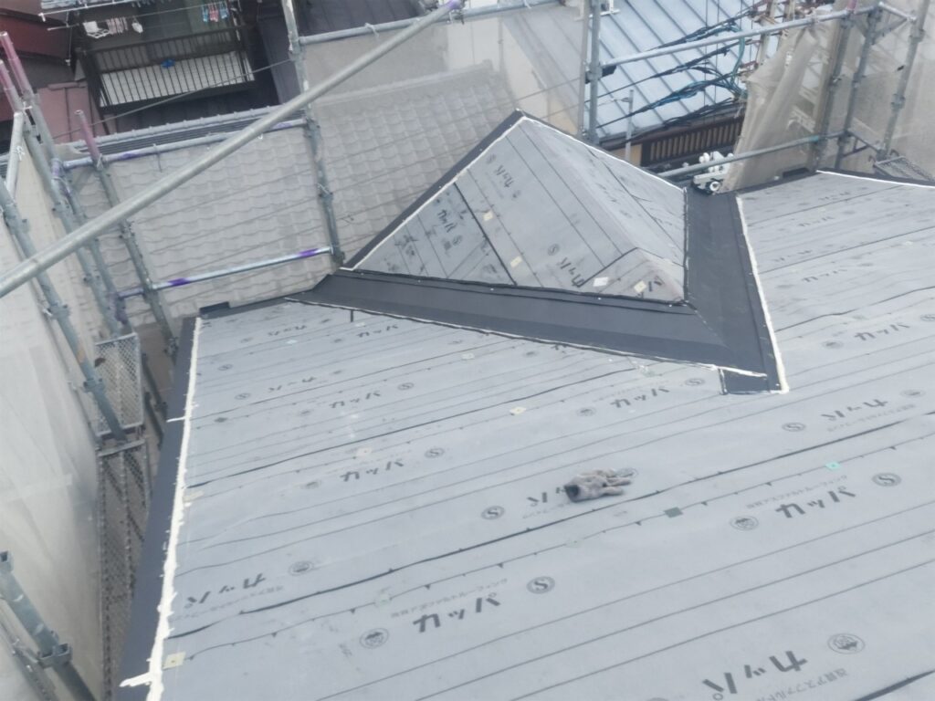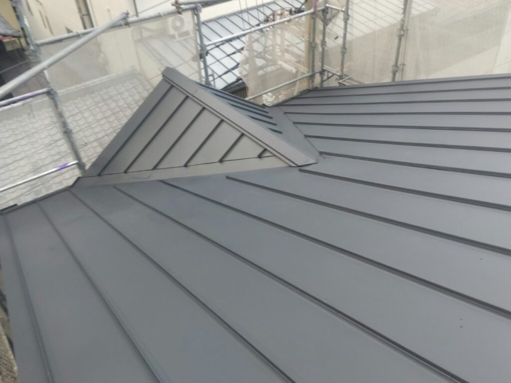 経年による黒ずみや劣化が見られた屋根は、カバー工法を実施しました。カバー工法は、既存の屋根材の上に防水シートを敷き、新しい金属屋根材を被せることで、工期やコストを抑えながら耐久性・防水性を高められるのが特徴です。これで雨漏りの心配も軽減し、安心して住み続けられる住まいになりました。